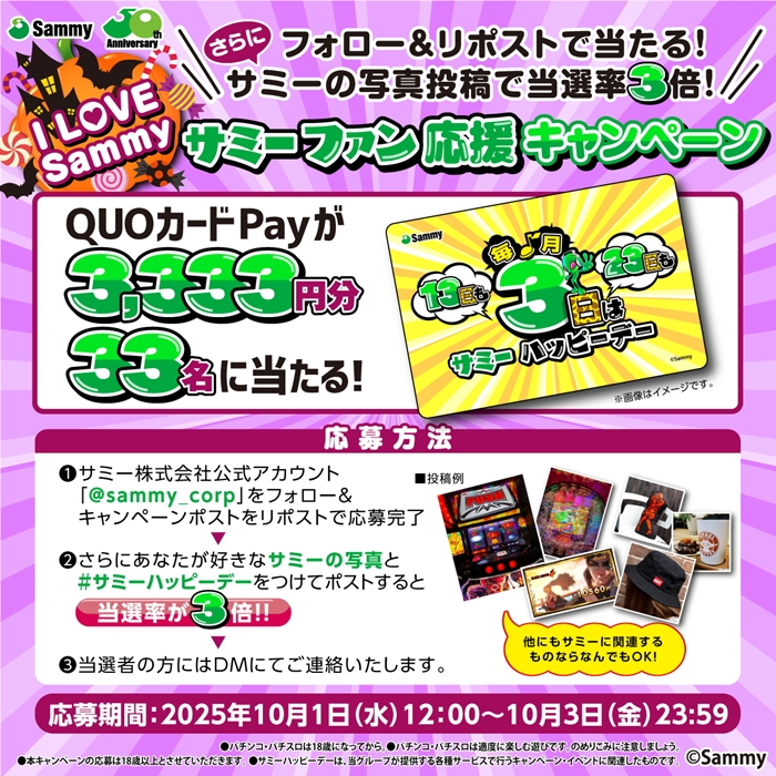 今月ももちろんサミーハッピーデーがある!10月と言えばハロウィンだけど、何に化ける?化け…化物語早く打ちたいんだあ!