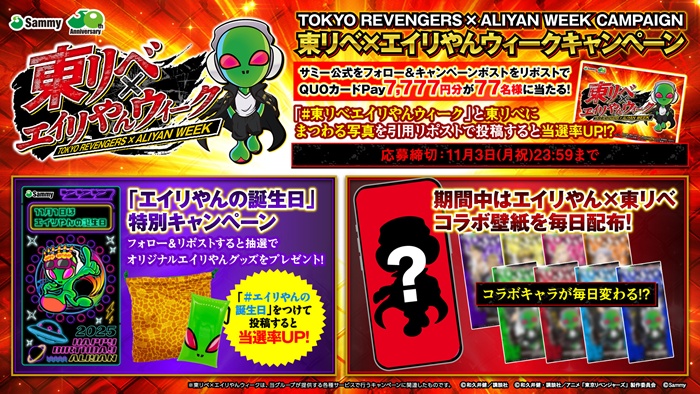 11月1日でサミー株式会社は50周年!東リベ×エイリやんウィークもあり11月はより一層サミーから目が離せない!